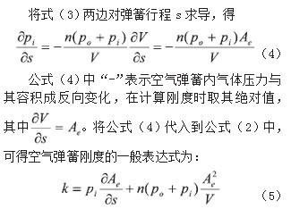 通過承載力F對(duì)彈簧行程s求導(dǎo)可得空氣彈簧剛度k。